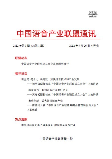 《中国语音产业联盟通讯》由中国语音产业联盟秘书处主办,包括联盟动态、热点追踪、数据透视、专题研究、产业资讯、会员之声等多个栏目,旨在及时跟踪国内外语音产业发展情况,报道联盟最新工作动向和会员单位动态,为政府与联盟会员以及联盟会员间搭建合作交流和资源共享平台。